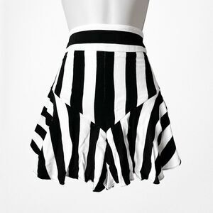 Milly High Waisted Black White Striped Ruffle Pleated Flared Shorts Size XS/S