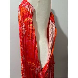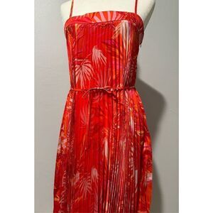 Milly Irene tropical Palm print Asymmetrical dress pleated accents sleeveless square neck side zipper adjustable straps with tie for waist size 6