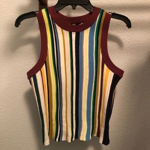 Milly knit striped tank. Size medium. Online picture shows fit and stripe colors. Trim is burgundy. One once and dry cleaned!