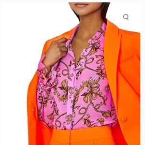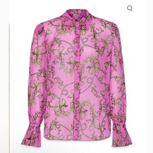 Milly Lacey Flared Cuff Blouse in Pink Size Medium