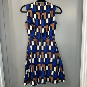 Stunning Milly of NY cobalt blue and earth tone geometric dress.
