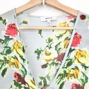 Milly Maggie Rose Print 100% Silk Bell Sleeve Lightweight Blouse