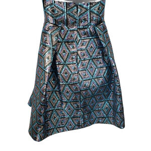 Milly Metallic Dress S Women Blue Purple Black Skater Plunging V Neck Prom Party