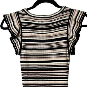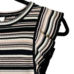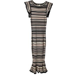 Milly Micro Stripe Mini Mermaid Ribbed Stretch Knit Midi Dress Bodycon NWT Small
