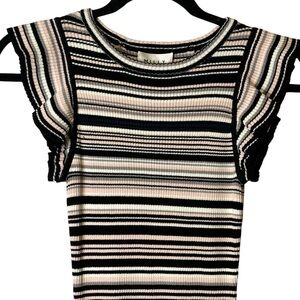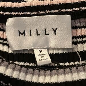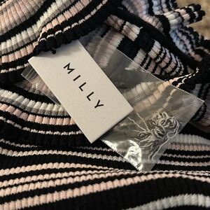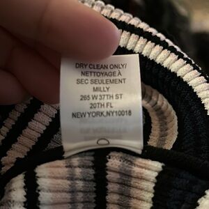 Milly Micro Stripe Mini Mermaid Ribbed Stretch Knit Midi Dress Bodycon NWT Small. Pulled threads shown in pics that will need to be pulled through likely from display and try on. Super stunning piece sold out online/in stores. Otherwise excellent condition. Super stretchy!! Approximate measurements 42” length 10.5” width at bust (super stretch to 21” width).