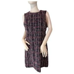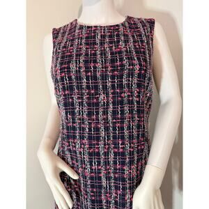 The Milly Navy Blue Dress is a mid-length, short-sleeve garment crafted from a thick fabric, featuring intricate pink and white threading throughout. This design offers a blend of classic elegance and contemporary style, making it suitable for various occasions.