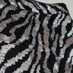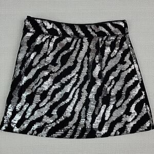 Milly Minis Animal Print Zebra Stripes Silver Sequins Black Velvet Mini Skirt 8