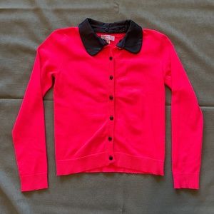 Milly Minis Faux Leather Collar Cardigan 12 (Big Girls) Melon (red, orange, neon pink color with black collar)