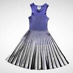 Milly Minis Godet Striped Optical Illusion Sleeveless Fit and Flare Pleated Knit Dress Kids Sz 12