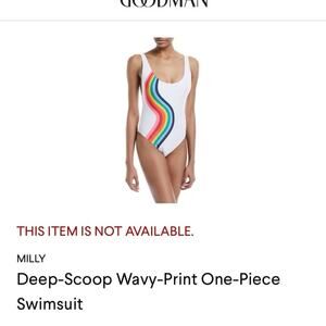 Milly Minis One Piece Swimsuit White Wavy Rainbow Stripe Made in USA Size 12