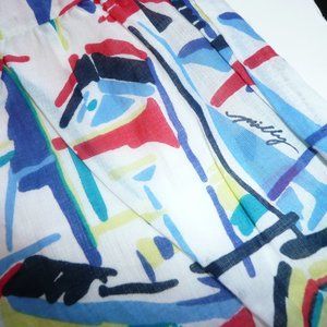This is for a brand new, without tags, Milly Minis, girl sailboat graphics cotton dress in USA size 8. This thin 100% fine cotton overlay dress is fully lined with a full hidden zippered back, a drop waist design with a ruffled bottom hem. Lovely for any summer outing, the colors are stunning, mod and in style with the striking bold colors. Dress is made in the USA with imported fabrics and requires hand wash or machine wash in cold water in gently delicate cycle and hang dry with a light iron if needed.