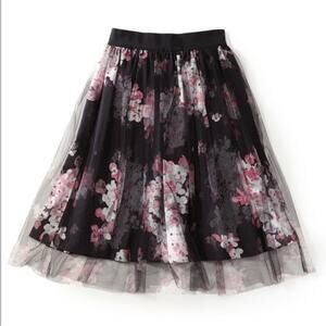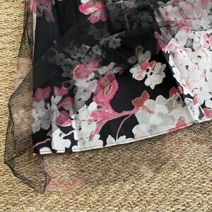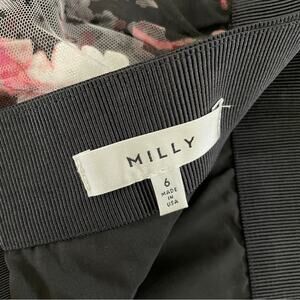 Milly Monica Tulle Overlay Black Pink Floral A-Line Skirt Grosgrain Waistband 6
