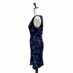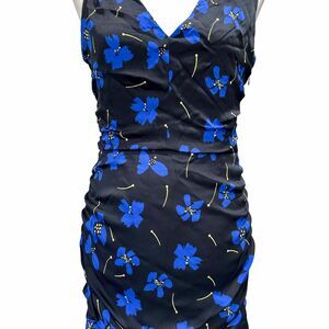 Milly NWT Butterfly Stretch Silk Pam Dress Size 4 Women's Ruched Sheath Blue