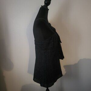 Milly NY Navy sequin embellished Black silk Bow one shoulder Top Viscose size XS