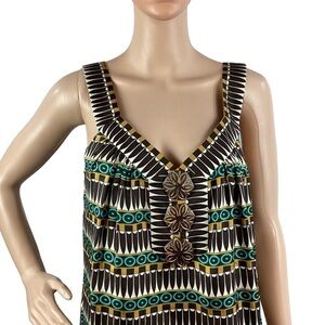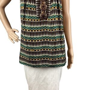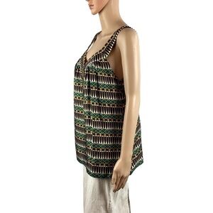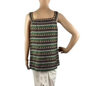 Milly NY Silk Tank Top Size 8 Brown Aqua Print