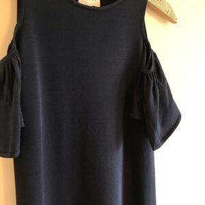 Features: Navy Blue Knit Shift Dress, Cold Shoulder details, thick high quality material.