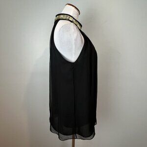 Milly New York Black Chiffon Blouse Size 8 Jeweled High Neckline Sleeveless Silk