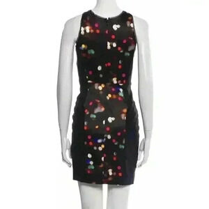 Milly New York Black Satin Colored Polka Dot Party Dress Size 2 XS Sheer Edges