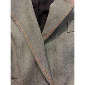 Milly New York Brown Herringbone Blazer With Orange Stitching Size 4