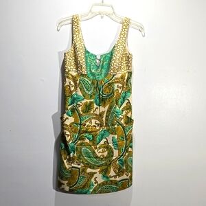 Milly New York Green and Gold Silk Sundress Sleeveless Mini 2