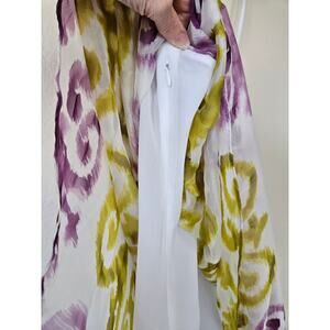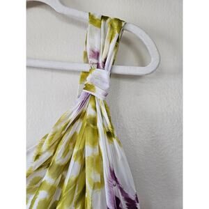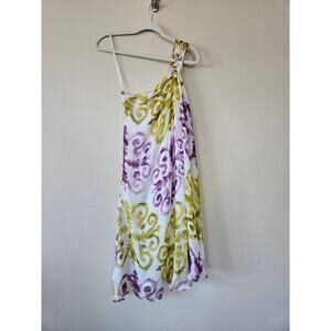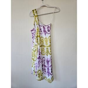 Milly New York One-Shoulder Silk Vango Pattern Dress, Size 0. In MINT condition. No signs of wear. No stains, no runs or pulls, no defects. Colors: White, Chartreuse, Purple.