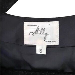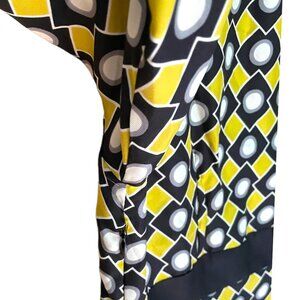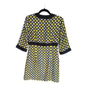 Milly New York Size 6 Yellow Black White 100% Silk Elbow Sleeve V-neck Dress