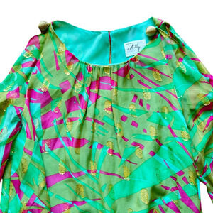 Milly New York Tropical Resort Silk Blouse Size 2 Green Pink Gold