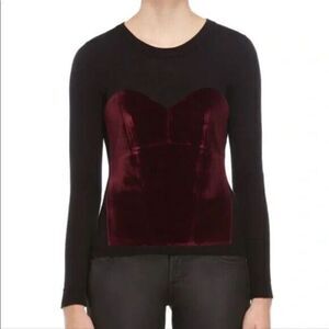Milly New York Women's Sz M Black/Maroon Velour/Knit Corsetry Pullover Sweater