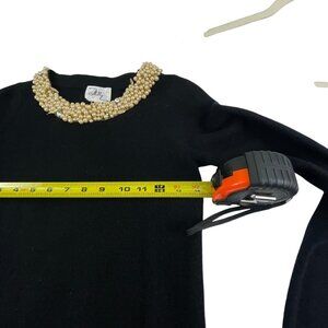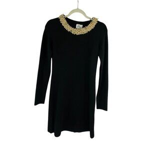 Milly New York Wool Sweater Dress Pearl Embellished Neck Size S Evening Neutral