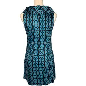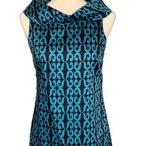 Milly Of New York Blue and Brown Mock Neck Sleeveless Mini Dress | Size 4