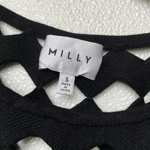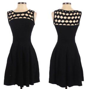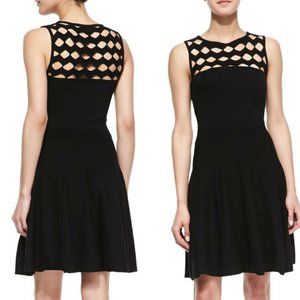 Milly Open Yoke Fit and Flare Knit Dress Black Mini Party Womens Size Small