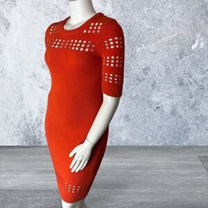 Milly Orange Cut Out Sweater Dress Short Sleeves