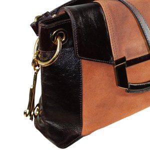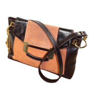 Milly Paige Two Tone Cognac Suede And Chocolate Leather Shoulder Bag