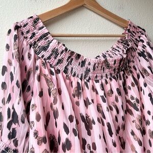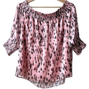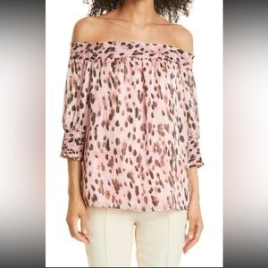 Milly Pandora Leopard Animal Metallic Off-the-Shoulder Top in Pink Multi Sz L