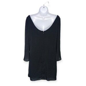 Milly Papillion Black Silk Dress, size 10. New with tags. Flared sleeve mini dress with round neck, deep scooped back, front keyhole, and concealed back zip closure. Luxurious silk-blend fabric. Perfect for cocktail parties, holidays, or evening events.