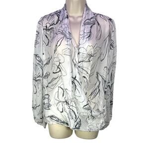 Milly Paula White Black Sketched Iris Floral Print Draped Cross Front Top Size M