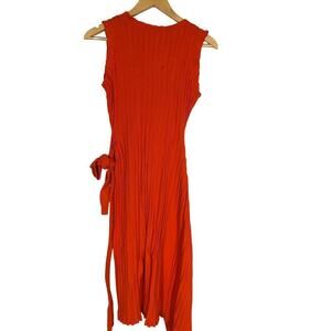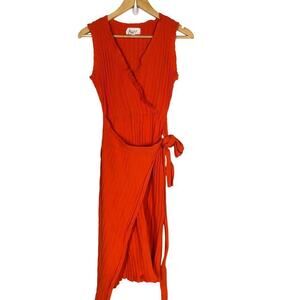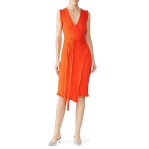 Milly Persimmon Dress Ribbed Sleeveless V-Neck Asymmetrical Wrap Orange Small