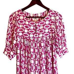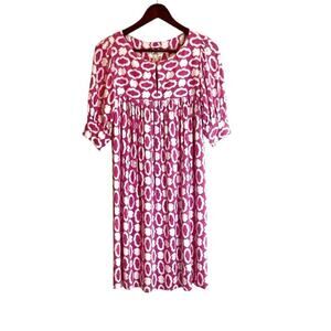 Milly Pink & White Jersey Dress Geometric Print Sz Medium Short Sleeves Preppy