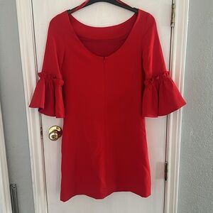 Milly Red Ruffled Arm Dress