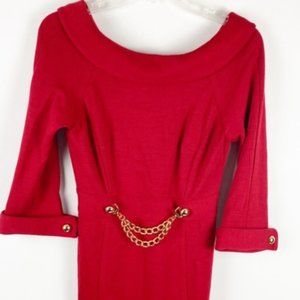 Milly Red Wool Dress Gold Chain Size P Gossip Girl