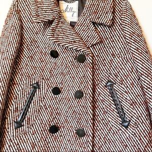 Stylish Milly pea coat. Features a double-breasted design. Red and white pattern. Perfect for a chic look. Vintage. Inspired from the gossip girl Blair Waldorf era - often seen wearing vintage Milly.