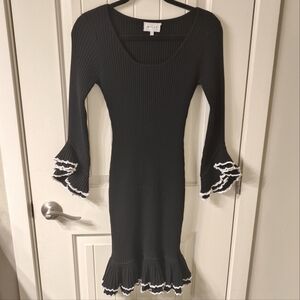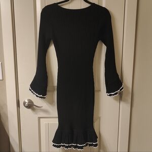 Black and white ribbed ruffle dress
