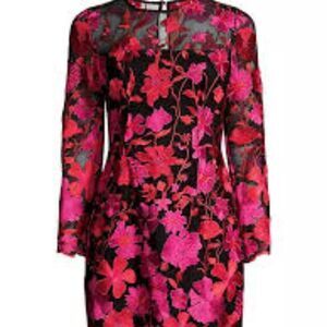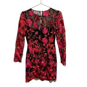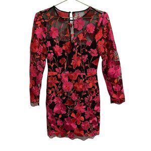 Milly Scottie Floral Lace Overlay Mini Dress Long Sleeve Embroidered Size 2