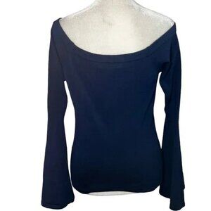 MILLY Selena Navy Blue Off Shoulder Bell Sleeve Sweater, Size Medium