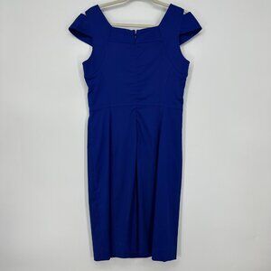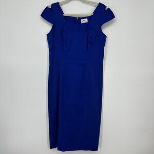 Milly Sheath Dress 10 Keithly Cut Out Cold Shoulder Cocktail Fitted Royal Blue
