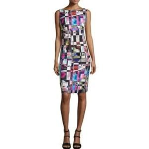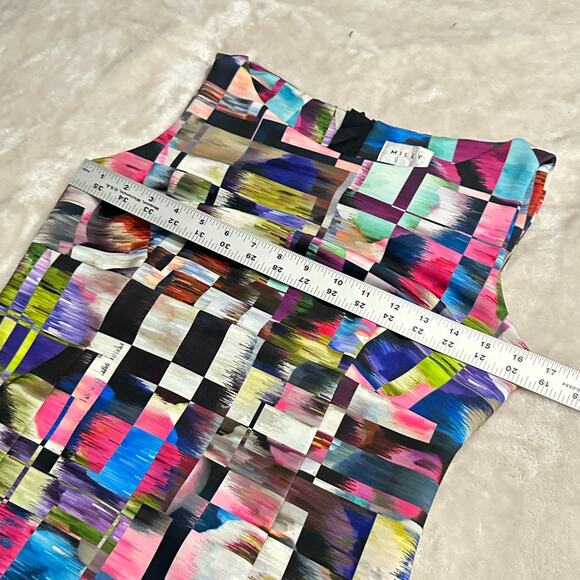 Milly Sheath Dress Women's 8 Multicolor Cubist Print Sleeveless Short Boat Neck