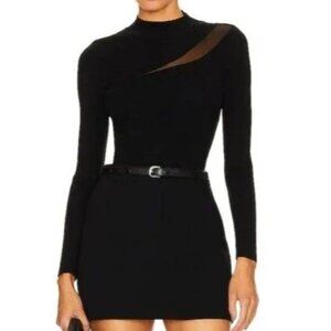 Milly Sheer Cut Out Long sleeve Top Knit Black Coquette Size L Revolve $325