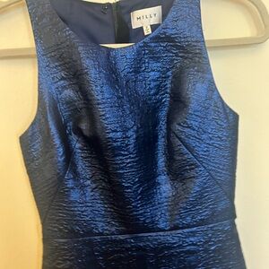 Shine in this Milly mini dress. Features a sleeveless design with a shimmering navy hue. Ideal for a night out.