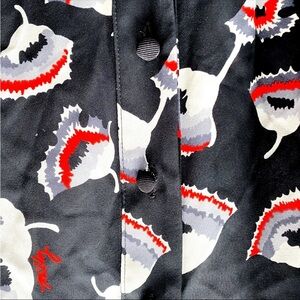 Milly Silk Floral Poppy Print Puff Sleeve Black Red Button Down Blouse Shirt Top