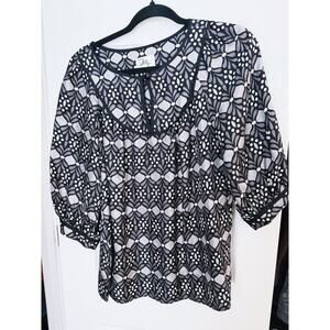 Milly Silk Keyhole Flowy Blouse Abstract Black White Size 6 Luxury Parisian Chic